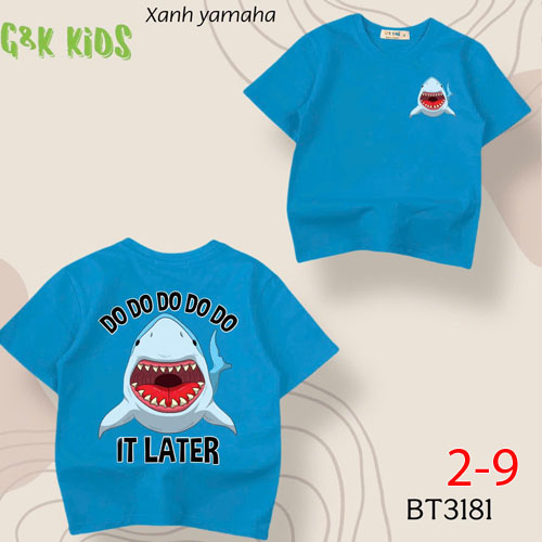 A486220 - Áo bé trai thun coton 4c in cá mập do do do_Size 2-9