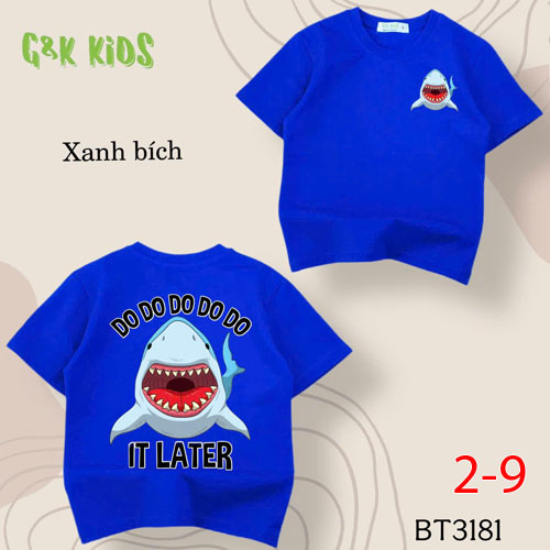 A486221 - Áo bé trai thun coton 4c in cá mập do do do_Size 2-9