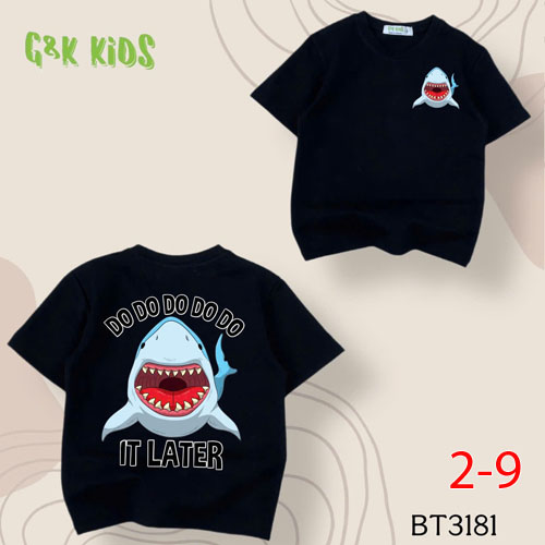 A486226 - Áo bé trai thun coton 4c in cá mập do do do_Size 2-9