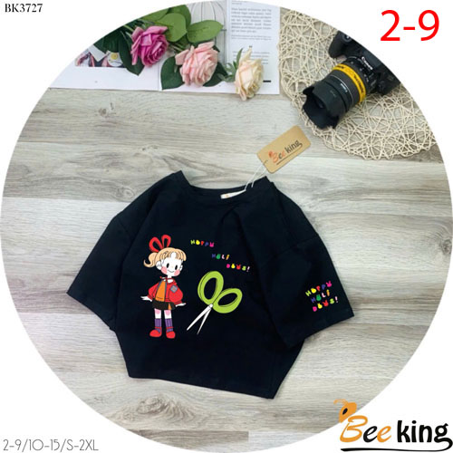 A486293 - Áo form lửng cô gái và cây kéo chất liệu cotton 4 chiều_Size 2-9