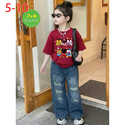 A486318 - Set jean bé gái áo thun contton mix cùng quần jean suông cá tính wash mềm sợi cotton_Size