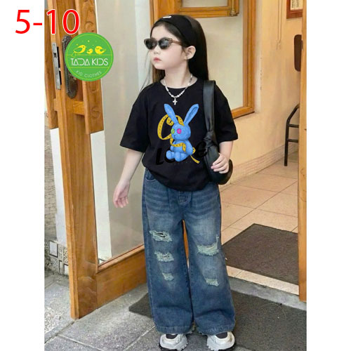 A486325 - Set jean bé gái áo thun contton mix cùng quần jean suông cá tính wash mềm sợi cotton_Size