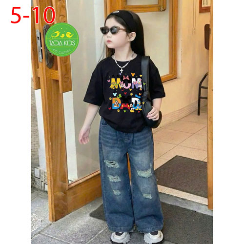 A486326 - Set jean bé gái áo thun contton mix cùng quần jean suông cá tính wash mềm sợi cotton_Size