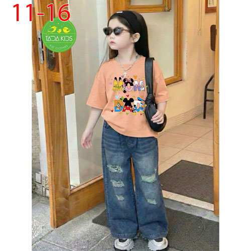 A486333 - Set jean bé gái áo thun contton mix cùng quần jean suông cá tính wash mềm sợi cotton_Size