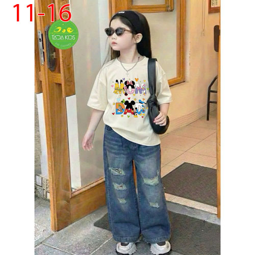 A486334 - Set jean bé gái áo thun contton mix cùng quần jean suông cá tính wash mềm sợi cotton_Size