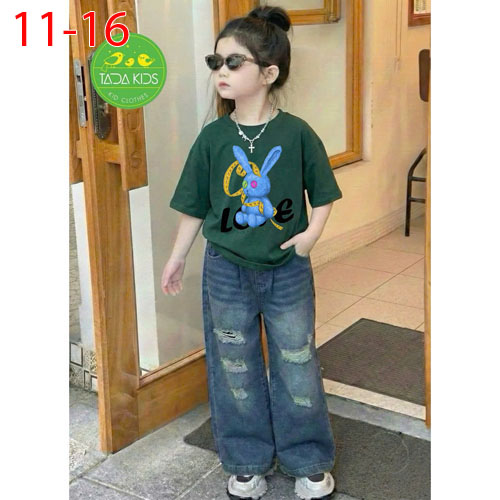 A486340 - Set jean bé gái áo thun contton mix cùng quần jean suông cá tính wash mềm sợi cotton_Size