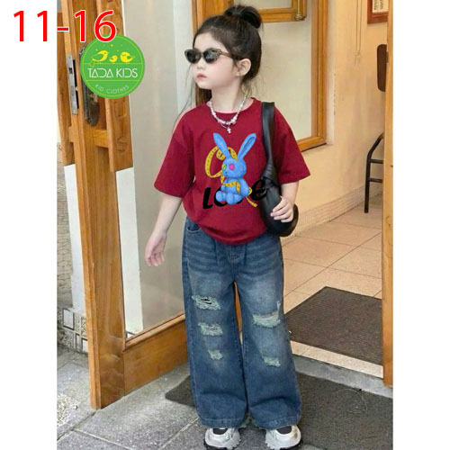 A486341 - Set jean bé gái áo thun contton mix cùng quần jean suông cá tính wash mềm sợi cotton_Size