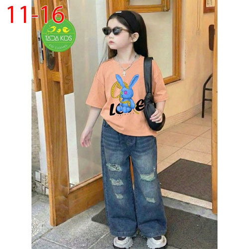 A486344 - Set jean bé gái áo thun contton mix cùng quần jean suông cá tính wash mềm sợi cotton_Size