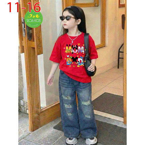 A486346 - Set jean bé gái áo thun contton mix cùng quần jean suông cá tính wash mềm sợi cotton_Size