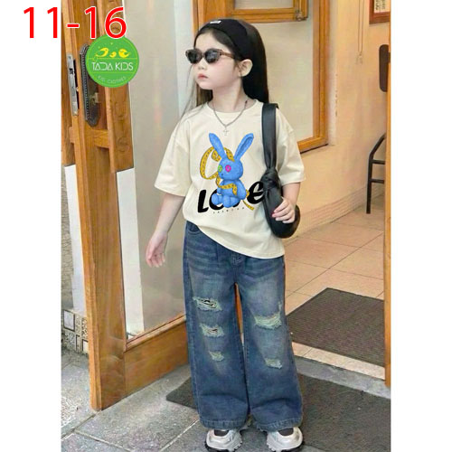 A486347 - Set jean bé gái áo thun contton mix cùng quần jean suông cá tính wash mềm sợi cotton_Size