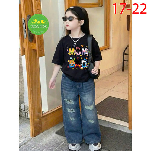 A486352 - Set jean bé gái áo thun contton mix cùng quần jean suông cá tính wash mềm sợi cotton_Size