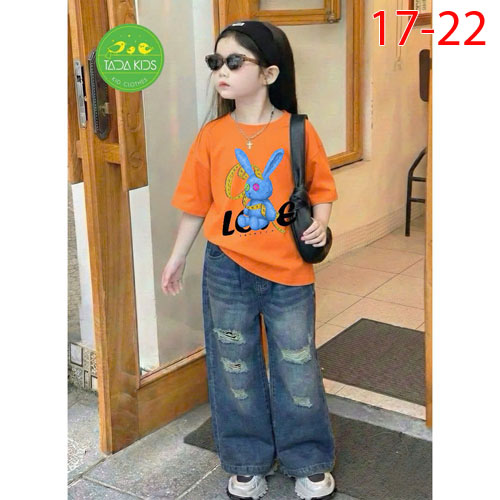 A486355 - Set jean bé gái áo thun contton mix cùng quần jean suông cá tính wash mềm sợi cotton_Size