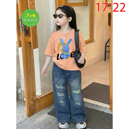 A486361 - Set jean bé gái áo thun contton mix cùng quần jean suông cá tính wash mềm sợi cotton_Size
