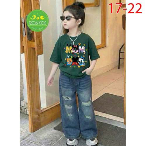 A486362 - Set jean bé gái áo thun contton mix cùng quần jean suông cá tính wash mềm sợi cotton_Size