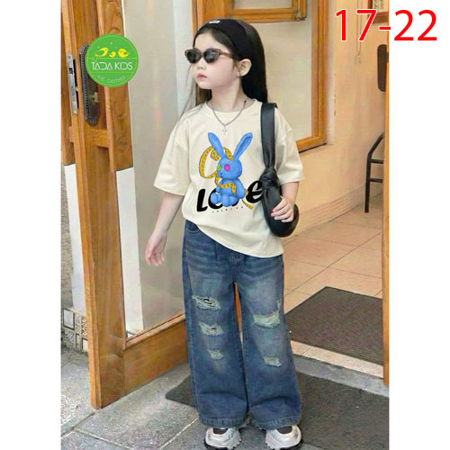 A486364 - Set jean bé gái áo thun contton mix cùng quần jean suông cá tính wash mềm sợi cotton_Size