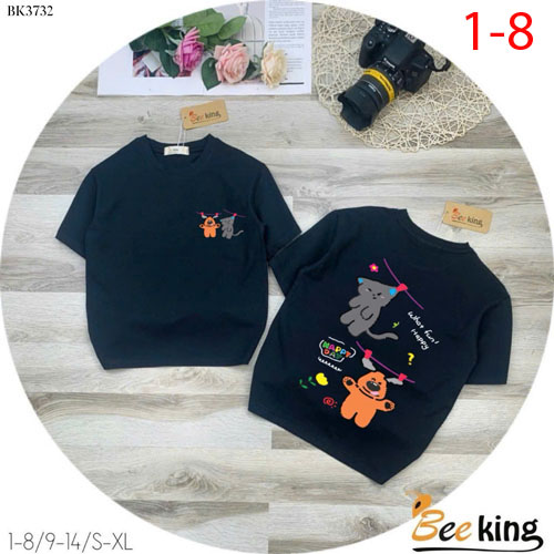A486376 - Áo form rộng giấu quần Happy day cún và mèo thun cotton_Size 1-8