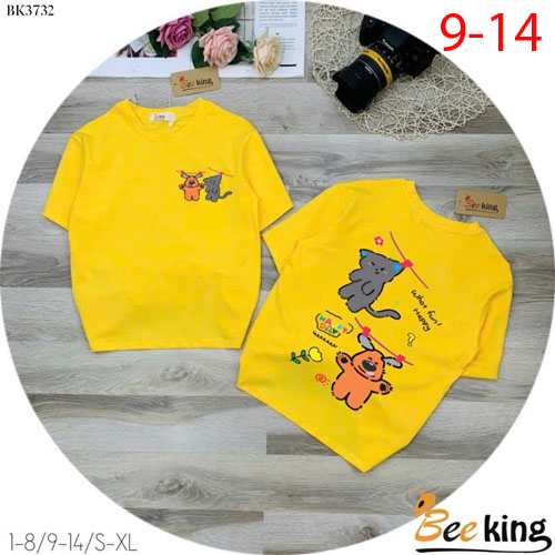 A486382 - Áo form rộng giấu quần Happy day cún và mèo thun cotton_Size 9-14