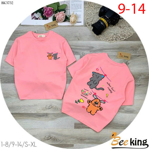 A486389 - Áo form rộng giấu quần Happy day cún và mèo thun cotton_Size 9-14