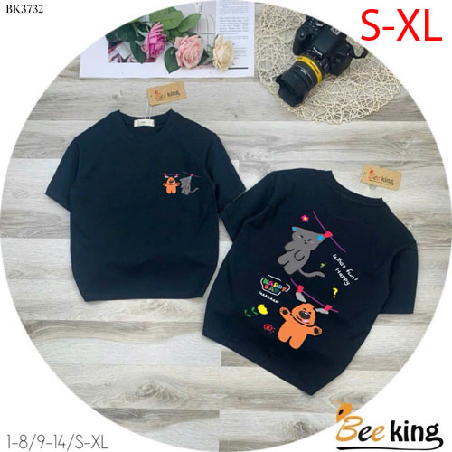 A486395 - Áo form rộng giấu quần Happy day cún và mèo thun cotton_Size S-XL