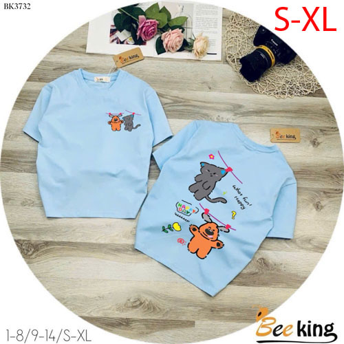 A486406 - Áo form rộng giấu quần Happy day cún và mèo thun cotton_Size S-XL