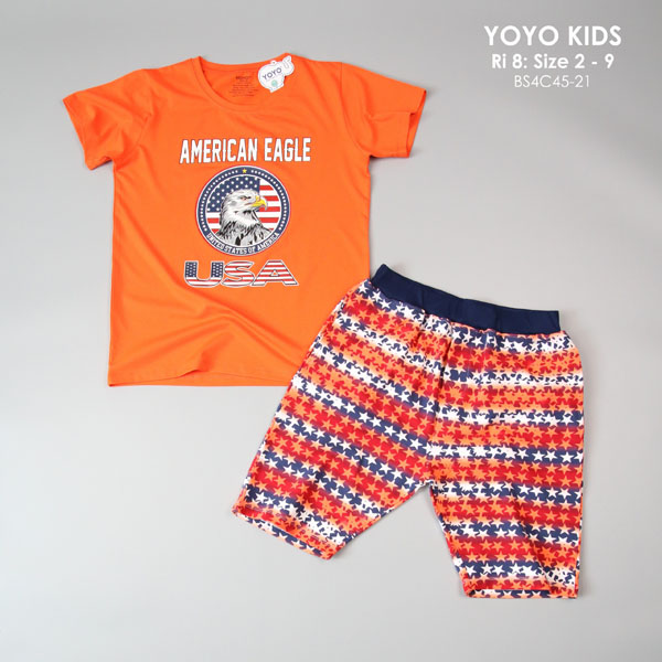 A219559 - Bộ YoYo BT thun cotton 4c in logo tròn American Eagle quần in thắm_Size XS-XXL