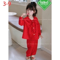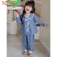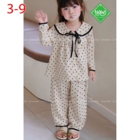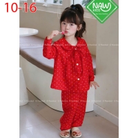 A467684 - Set chấm bi dài tay áo và lai quần viền cùng màu vải Chấm bi chất vân mây cổ sen mix thêm