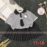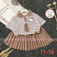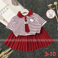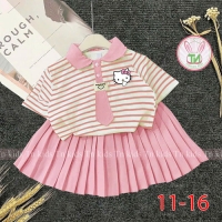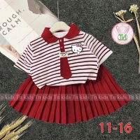 A467663 - Set áo trụ cà vạt váy xếp ly kèm chip đùi áo thun cotton in Kitty váy lụa nhập_Size 11-16