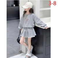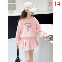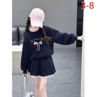 A460443 - Nexxi Win Win set áo dài tay form rộng in nơ mix chân váy xếp ly kèm quần viền ren lai chấ