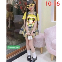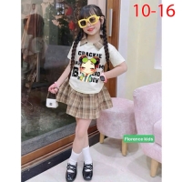 A466726 - Set váy bé gái áo chất cotton 4c in cô bé CRACKIE chân váy caro xếp ly_Size 10-16