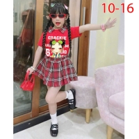 A466725 - Set váy bé gái áo chất cotton 4c in cô bé CRACKIE chân váy caro xếp ly_Size 10-16