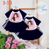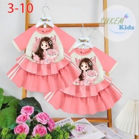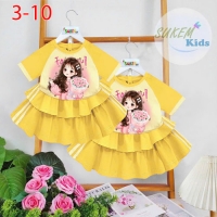 A464011 - (25/10)Sét váy áo ngắn tay ráp lăng ép cô gái chibi chân váy may nhún 2 tầng chạy dây viền