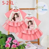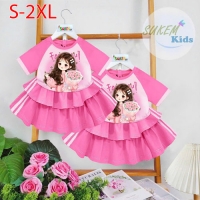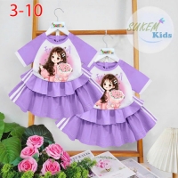 A464014 - (25/10)Sét váy áo ngắn tay ráp lăng ép cô gái chibi chân váy may nhún 2 tầng chạy dây viền