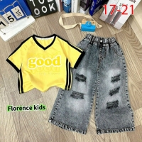 A466487 - Set jean siêu xinh cho bé áo chất thun cotton 4c in GOOD quần jean cotton mềm was rách chạ