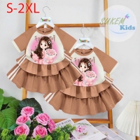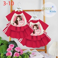A464006 - (25/10)Sét váy áo ngắn tay ráp lăng ép cô gái chibi chân váy may nhún 2 tầng chạy dây viền