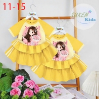 A464015 - (25/10)Sét váy áo ngắn tay ráp lăng ép cô gái chibi chân váy may nhún 2 tầng chạy dây viền