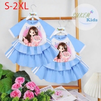 A464025 - (25/10)Sét váy áo ngắn tay ráp lăng ép cô gái chibi chân váy may nhún 2 tầng chạy dây viền