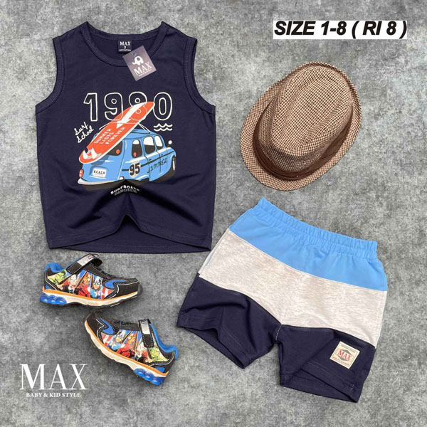 A213742 - Bộ Max BT thun cotton 4c, quần rã phối màu, áo in xe 1980_Size 1-8