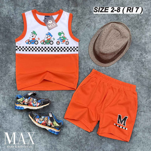 A221848 - Bộ Max BT sát nách thun cotton 4c in Mario chạy xe_Size 2-8
