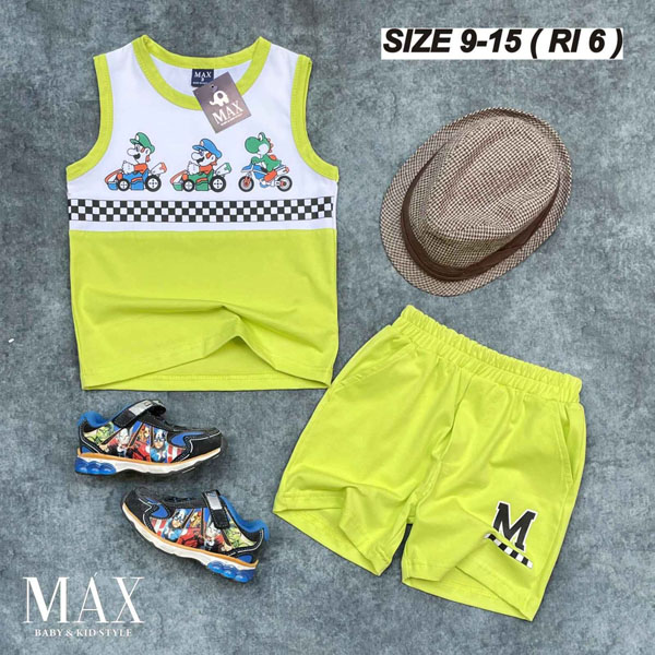 A221850 - Bộ Max BT sát nách thun cotton 4c in Mario chạy xe_Size 9-15