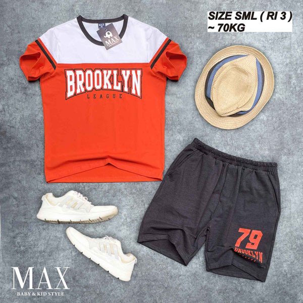 A230566 - Bộ Max BT thun cotton 4c, áo rã phối, in chữ BROOKLYN quần số 79_Size SML