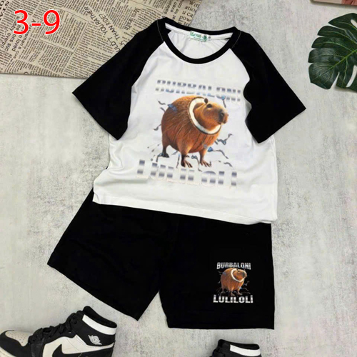 A456608 - Bộ cotton phối cho bé trai in hình cá và Capy Bara chất thun cotton 4c_Size 3-9