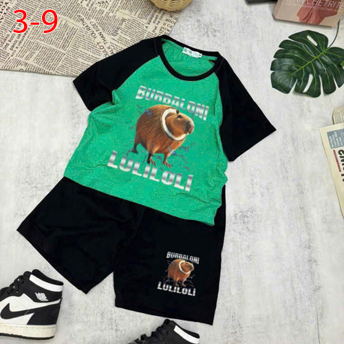 A456613 - Bộ cotton phối cho bé trai in hình cá và Capy Bara chất thun cotton 4c_Size 3-9 - Bộ cotto