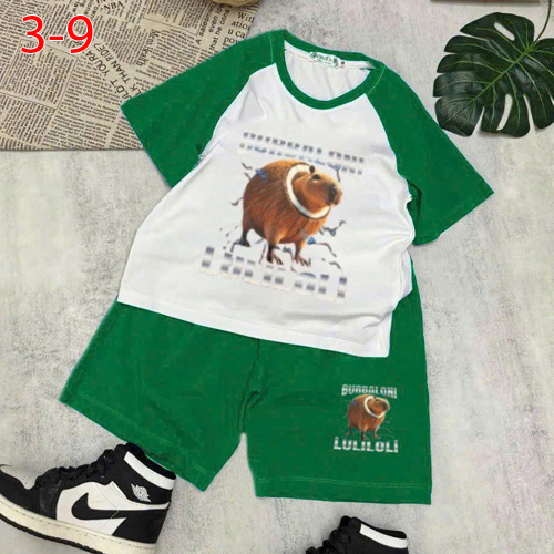 A456615 - Bộ cotton phối cho bé trai in hình cá và Capy Bara chất thun cotton 4c_Size 3-9
