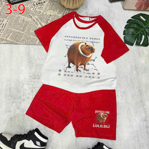 A456616 - Bộ cotton phối cho bé trai in hình cá và Capy Bara chất thun cotton 4c_Size 3-9