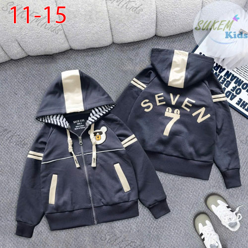 A459278 - Áo khoác thể thao cắt phối may bo thêu đắp gấu xù có túi 2 bên sau in SEVEN 7 vải da cá_Si