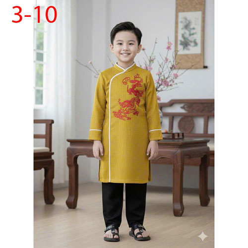 A462258 - Bộ áo dài trai thêu rồng vải Tafta cho bé trai_Size 3-10