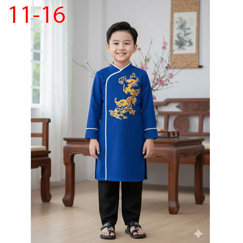 A462261 - Bộ áo dài trai thêu rồng vải Tafta cho bé trai_Size 11-16