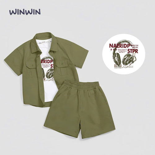 A466971 - Nexxi Win Win set 3 món chất liệu kaki cotton mix áo thun cotton 4C quần sọt, áo sơ mi phố