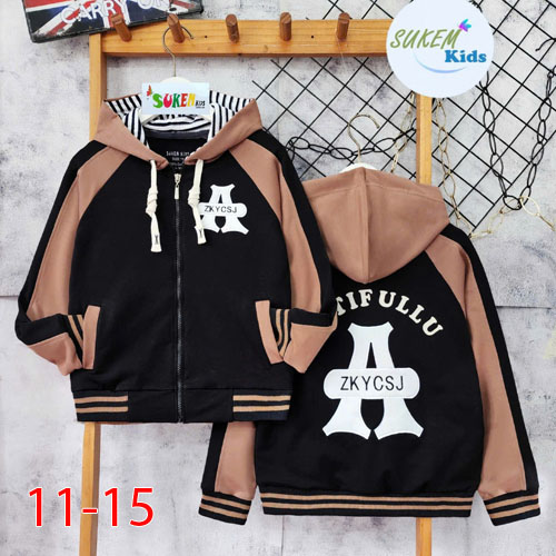 A473357 - Set bé gái áo khoác cắt phối tay ráp lăng chạy dây viền thể thao đắp chữ A_Size 11-15