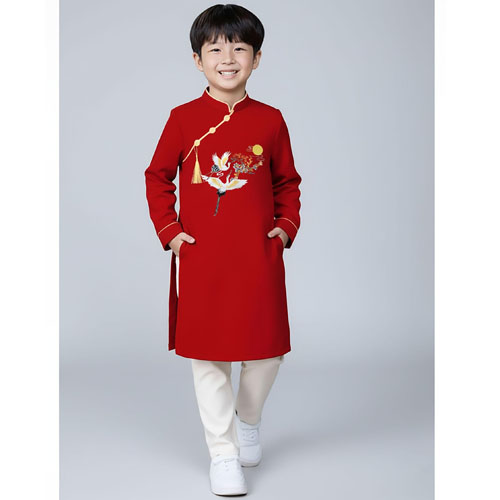 A475017 - Nexxi Win Win áo dài bé trai chất liệu tapta Hàn hình thêu hạc kèm tua rua_Size 1-12